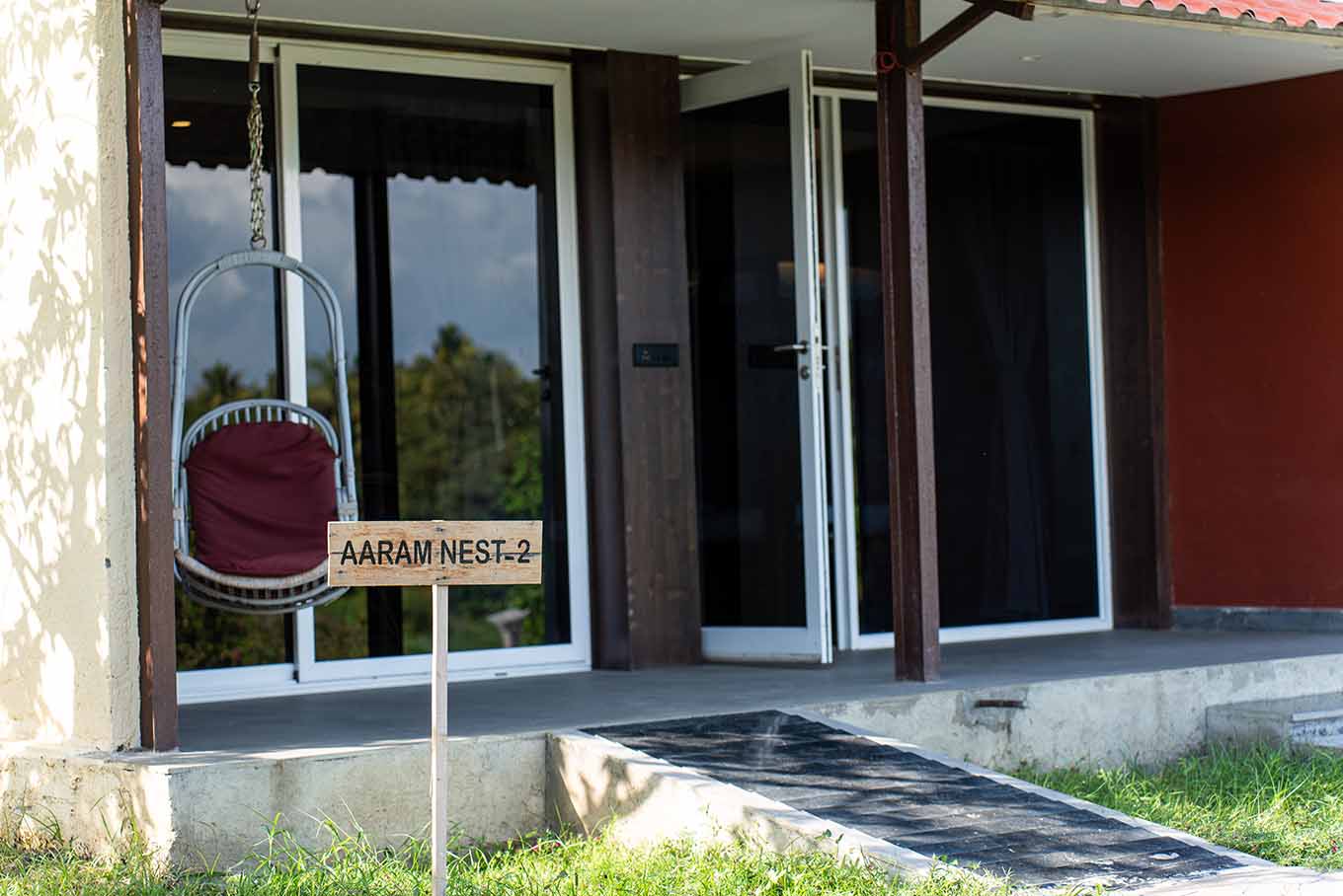 Aaram Nest 1 and 2 are double-bunk-bedded, cuddled up sanctums which provide you with expansive views of the skies meeting the green countryside. This kid-friendly cove accommodates up to four guests; fancy your family and friends with you here! Let your kids play around the areas on swings as you enjoy your quiet time knowing your children are safe and enjoying themselves. A patio adorns the room, letting you and your loved ones snuggle up in the evenings.