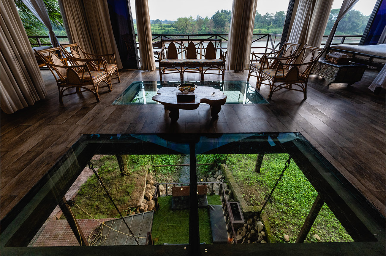Originating from the artificial beehive placed in the middle, the Bee Hive chalet makes for an iconic getaway for city folk. With high ceilings, an on-site waterfall and a massive swing above an enchanting stream, this chalet takes the crown for groups looking to escape the hustle-bustle of big cities.