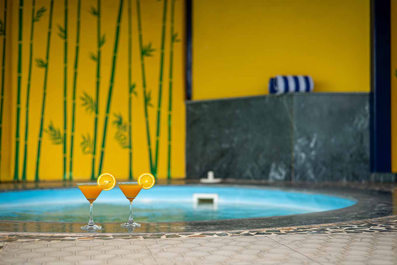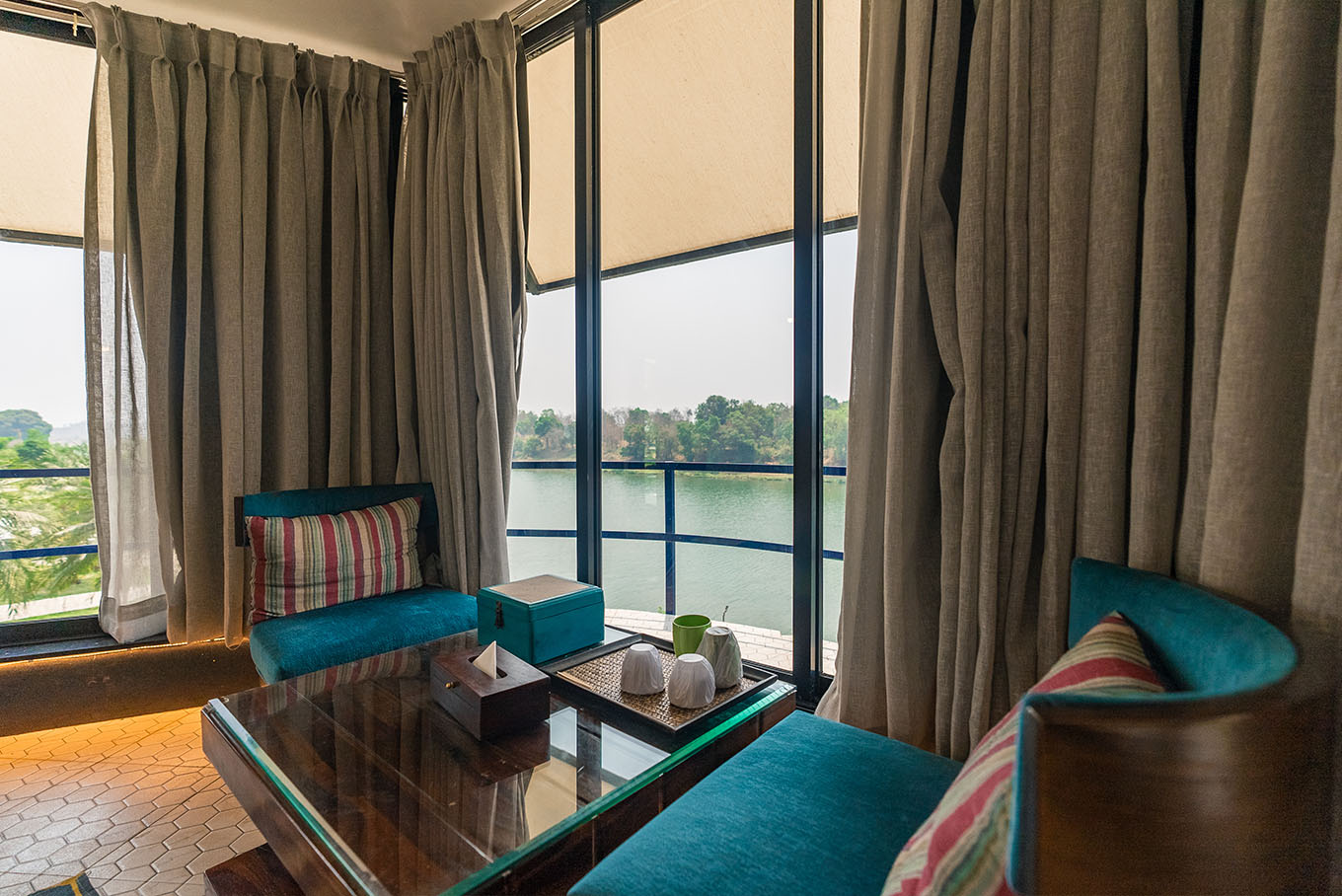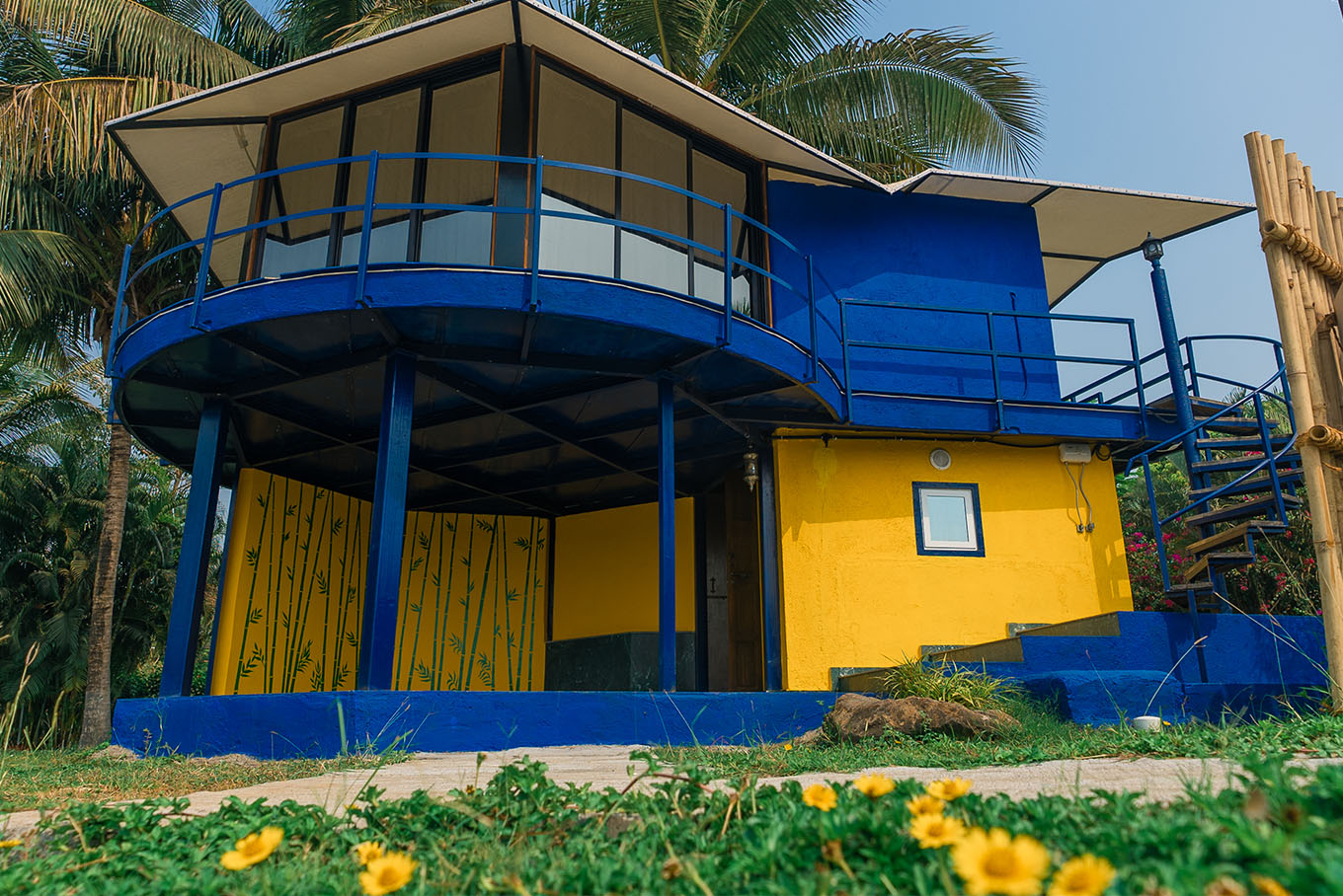 Our Hex room comes with sublime interiors imitating a tropical backdrop. The lower floor houses a circular pool, the washroom showcases blue hexagonal mirrors, the space above presents an exquisite view of the gorgeous river. What's more, the bedroom aesthetics unfold into a luxury in-room experience, and the arc-like balcony allows for an almost aerial river view.