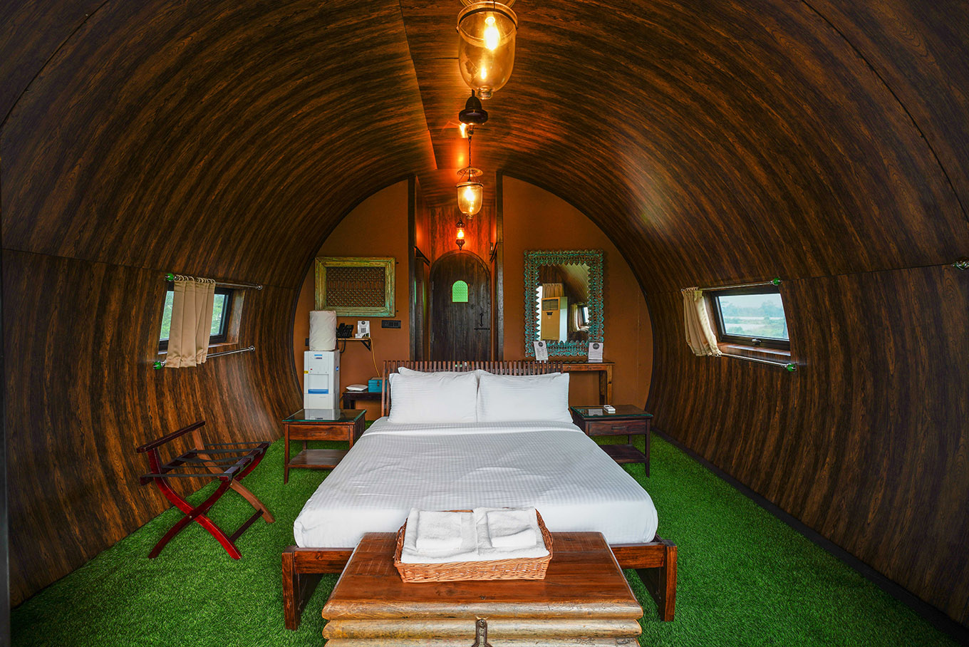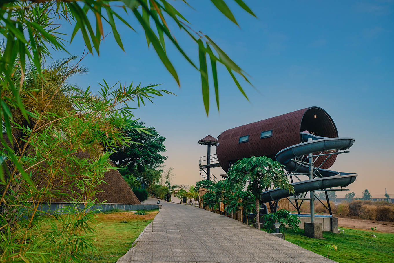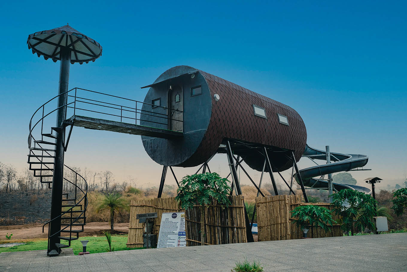 We've made the barrel-living experience a reality now! The interior design and tube-shaped accommodation come with a perfectly crafted balcony offering views inspiring healthy retrospection and admirable creativity. No bragging, but a sneak-peak usually suffices to convince our visitors. Come over and live the vacation life as you slide and glide from your fun-filled by-the-balcony route into the pool! Rest assured, you'll want to visit again.