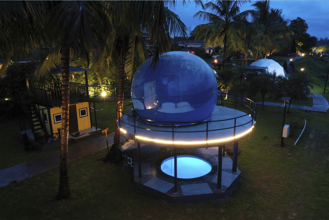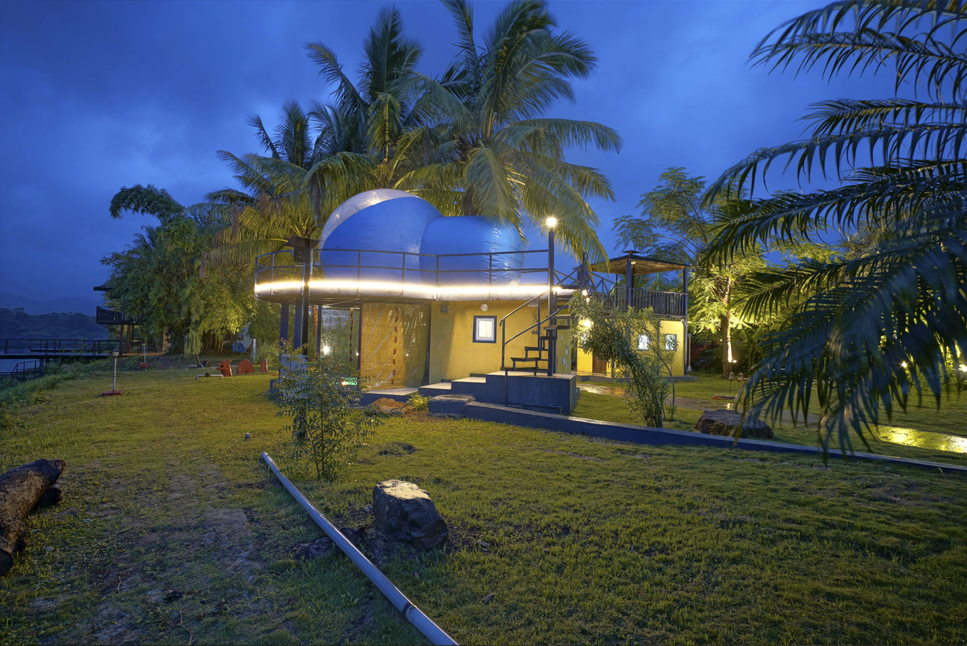 Crack open the freebird in you with dazzling views of the tropical landscape. This inflatable and transparent Bubble room makes for a magnificent option to bow down to starry nights of twinkling celestial objects. Fret not! There’s also a plunge pool and ample space for outdoor sit-out moments