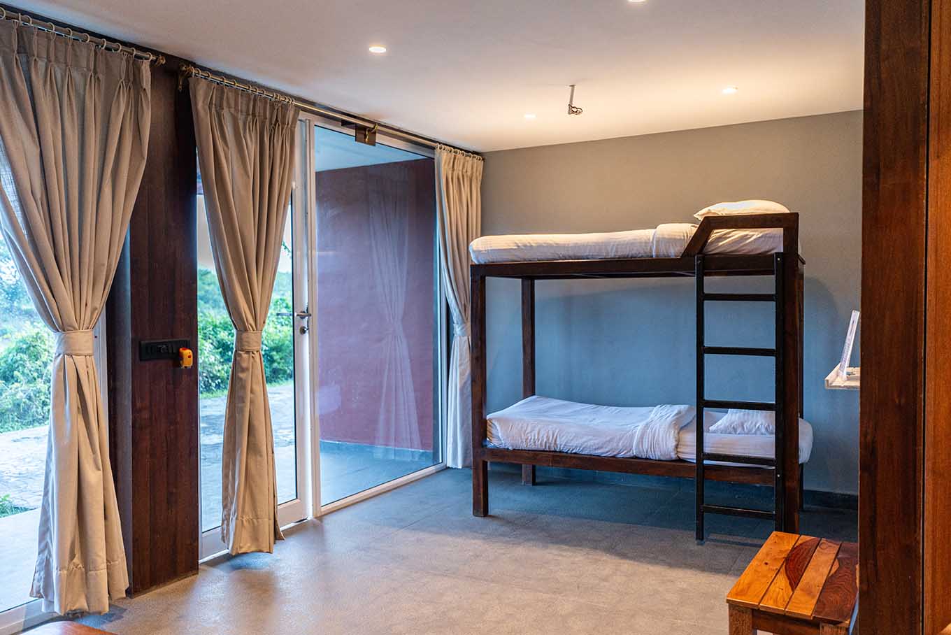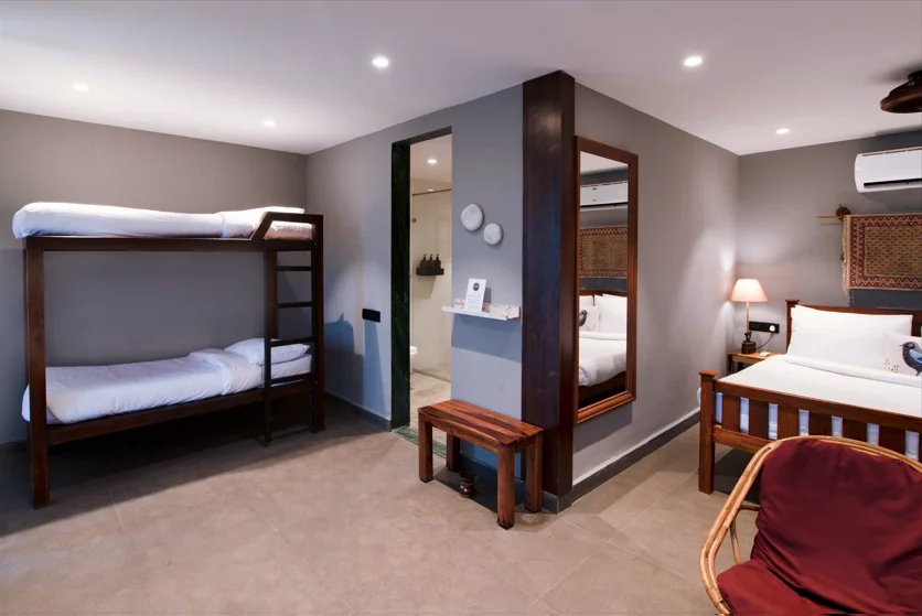 Aaram Nest 1 and 2 are double-bunk-bedded, cuddled up sanctums which provide you with expansive views of the skies meeting the green countryside. This kid-friendly cove accommodates up to four guests; fancy your family and friends with you here! Let your kids play around the areas on swings as you enjoy your quiet time knowing your children are safe and enjoying themselves. A patio adorns the room, letting you and your loved ones snuggle up in the evenings.