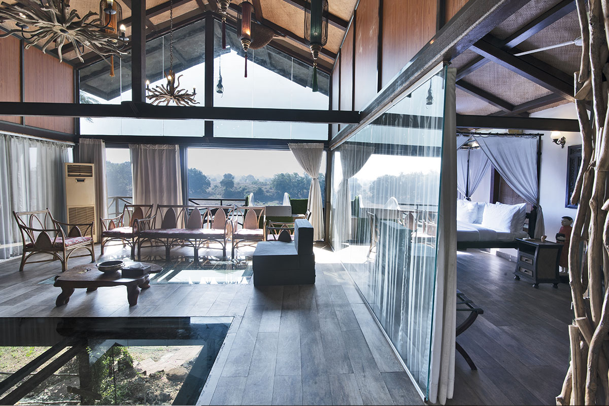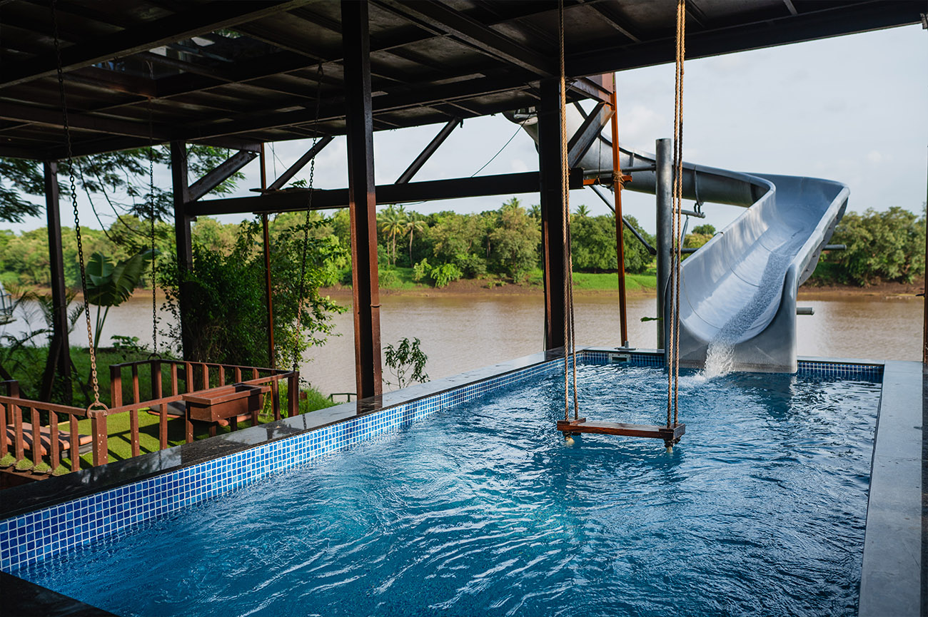 Originating from the artificial beehive placed in the middle, the Bee Hive chalet makes for an iconic getaway for city folk. With high ceilings, an on-site waterfall and a massive swing above an enchanting stream, this chalet takes the crown for groups looking to escape the hustle-bustle of big cities.