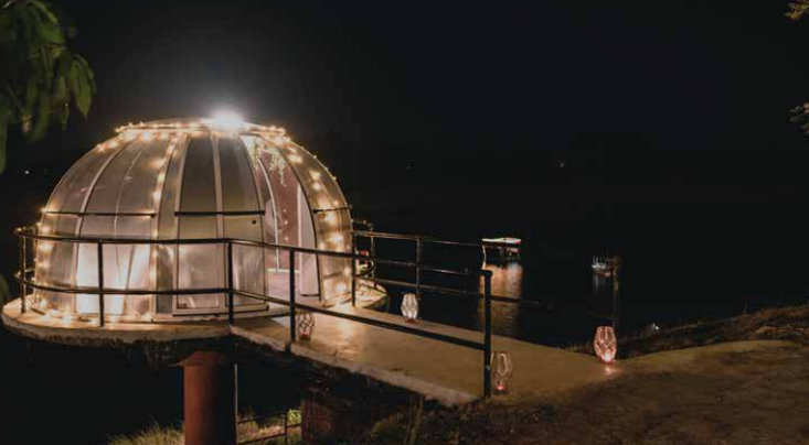 Step out on the deck and stargaze to glory, or sit in and feast in a magnificently well-lit dome, treating your taste buds to a delicious dinner. While the hanging vines and in-dome aesthetics amplify your feasting experience, the starry nights will make your jaw drop
