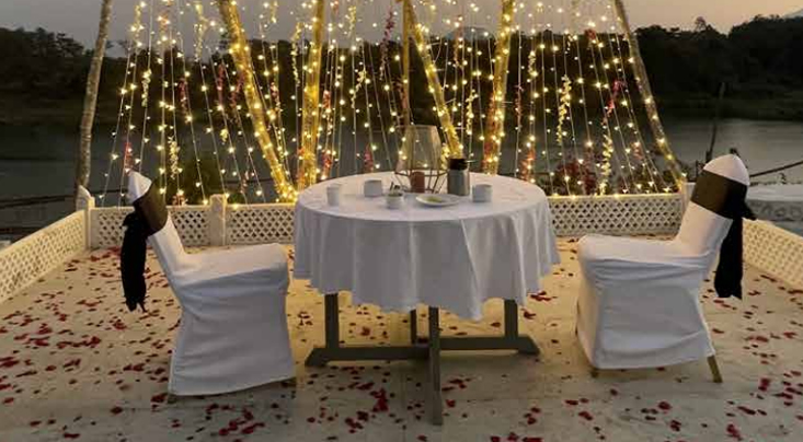 An enchanting riverside haven for couples. Enjoy a cute set-up under the stars, indulging in a culinary symphony that makes every moment magical. Perfect for intimate dining/ unforgettable proposals.