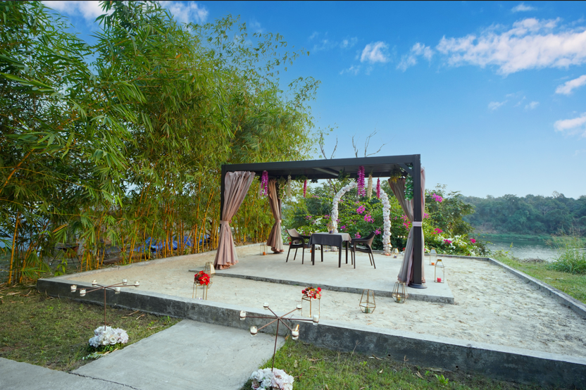How would a riverside celebratory experience decked with aesthetic lighting and wholesome ornamental delights be? Come over and see for yourself! Not to forget, the sandy base introduces a beach-like vibe translating into a riveting scene. Birthdays, anniversaries, festive parties, or personalized euphoric get-togethers – we've curated a landscape for one and all.