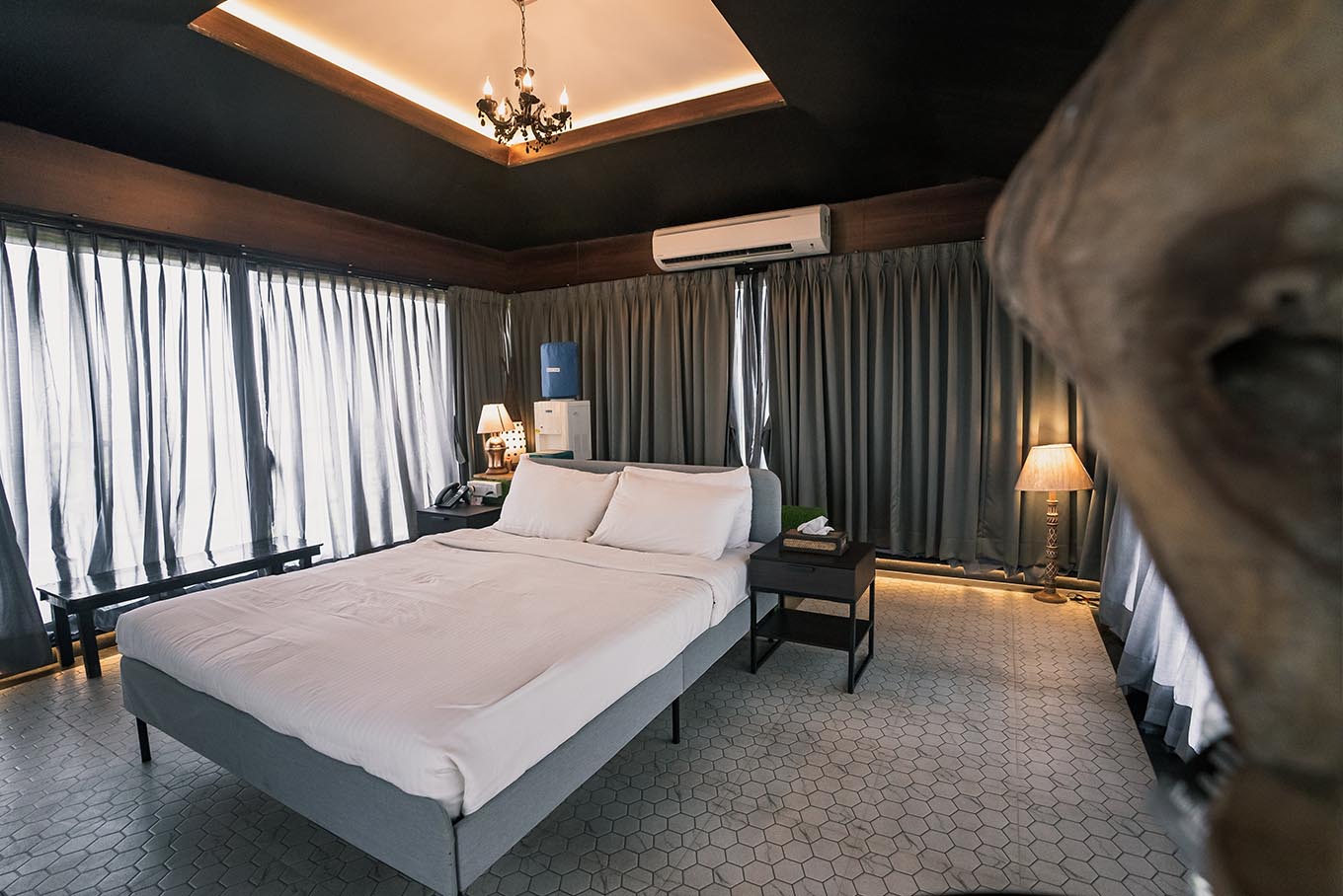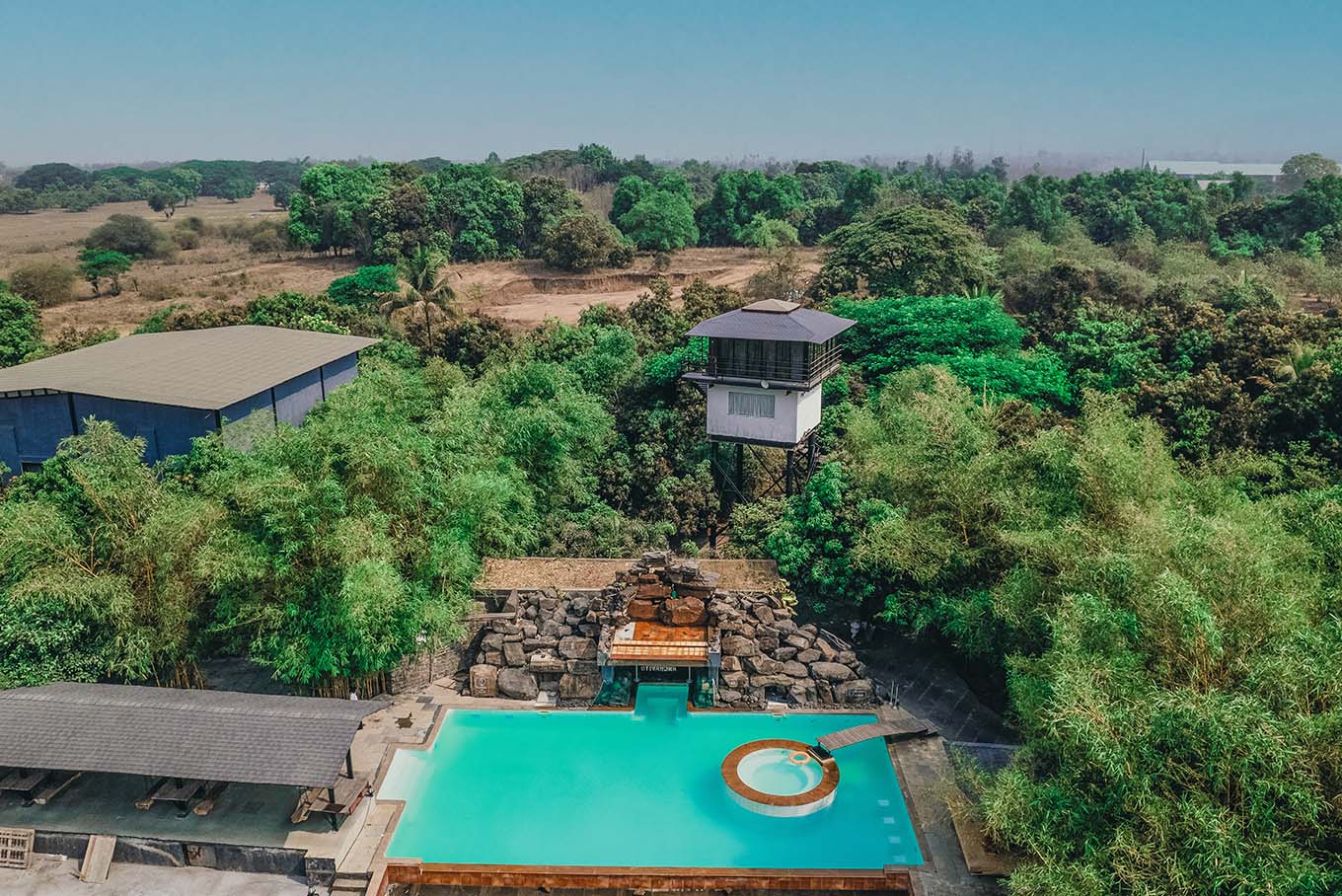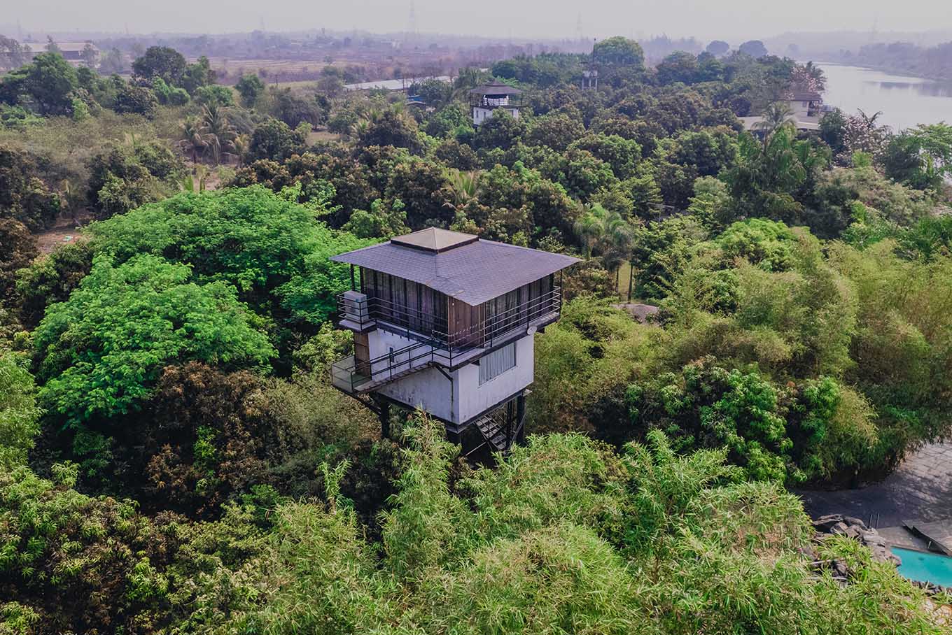 Surrounded by glass on all sides and a luxurious bathroom with sleek interiors and a circular bathtub on the lower floor, our glass rooms blend the privileges of royalty and transparent interiors, allowing you to continually appreciate the river, mountains, and greenery. To spice things up, the chandelier and the magnificently designed translucent-ceiling add to the charm.