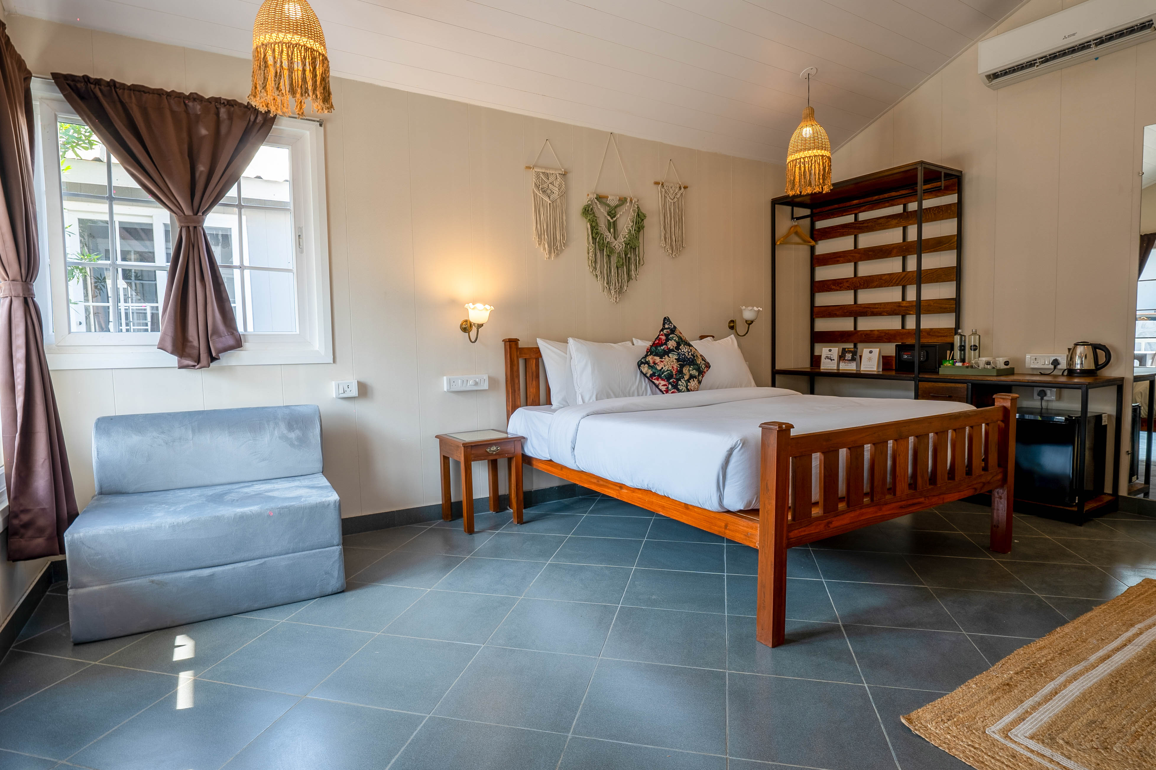 Step into the shimmering azure waters and embrace a uniquely designed experience in our Magnolia Pool View rooms, perfectly situated on the ground level for seamless access. These spacious rooms feature a plush queen-size bed, a versatile sofa-cum-bed, a private balcony, and a cozy patio, offering an ideal blend of comfort and elegance. Start your day with refreshing dips in the pool, unwind during sunlit afternoons and soak in the serene surroundings. Thoughtfully curated with a guest-centric approach, every detail ensures effortless poolside living, making your stay both relaxing and memorable.