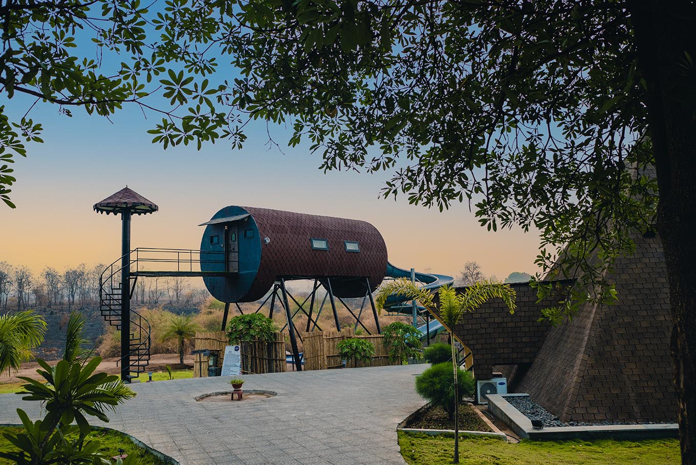 We've made the barrel-living experience a reality now! The interior design and tube-shaped accommodation come with a perfectly crafted balcony offering views inspiring healthy retrospection and admirable creativity. No bragging, but a sneak-peak usually suffices to convince our visitors. Come over and live the vacation life as you slide and glide from your fun-filled by-the-balcony route into the pool! Rest assured, you'll want to visit again.