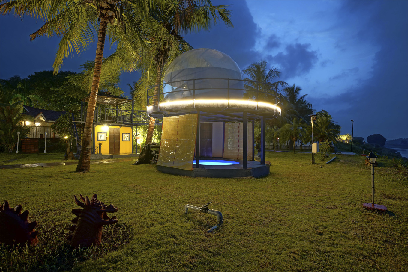 Crack open the freebird in you with dazzling views of the tropical landscape. This inflatable and transparent Bubble room makes for a magnificent option to bow down to starry nights of twinkling celestial objects. Fret not! There’s also a plunge pool and ample space for outdoor sit-out moments